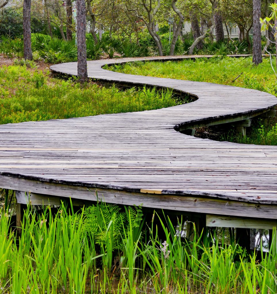 Tucked between Grayton Beach State Park and Seaside, it’s one of the newer communities along idyllic 30A. There is an extensive woodland trail system with miles of scenic nature trails that course through preserved state park forests over coastal dune lakes by charming wood bridges. Sticking to the paved paths, you can take in the gorgeously designed homes.