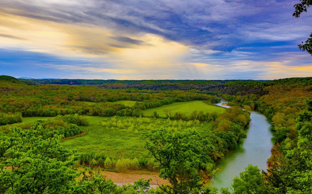 From the Gilbert General Store it’s a short drive [Google Map directions here] to this eagle eye view of a bend in the Buffalo River between Gilbert and Maumee South.