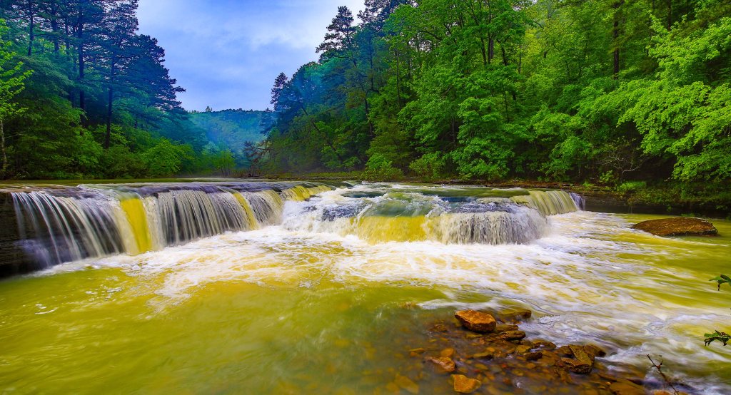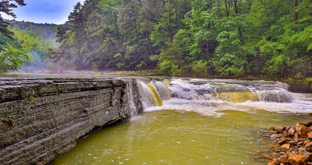 The highest waterfall between the Appalachians and the Rocky Mountains is located in Arkansas along the Buffalo National River. This beautiful 209′ tall waterfall and its surroundings is a MUST SEE. I hear that from the regular trail head it’s a pretty tough hike. that starts in the hills above the top of the falls and ends at the bottom of the falls. I can see that the tough uphill climb out would be difficult.