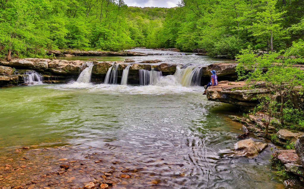This is an incredibly long drive from Harrison especially when you include the 7’ish miles of gravel/dirt roads,. It would be a shorter distance if you were staying at Ponca or Jasper. Regardless, the walk along the river is short and sweet and the falls have lots of areas to dip your toes in the water and relax on the rocks. AllTrails details here.