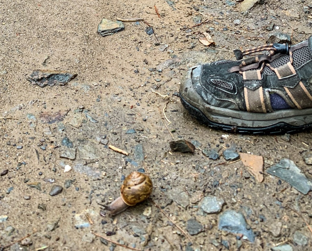#2 Arriving early, directly after a rain shower, we had this popular trail to ourselves. Except for this little guy!
