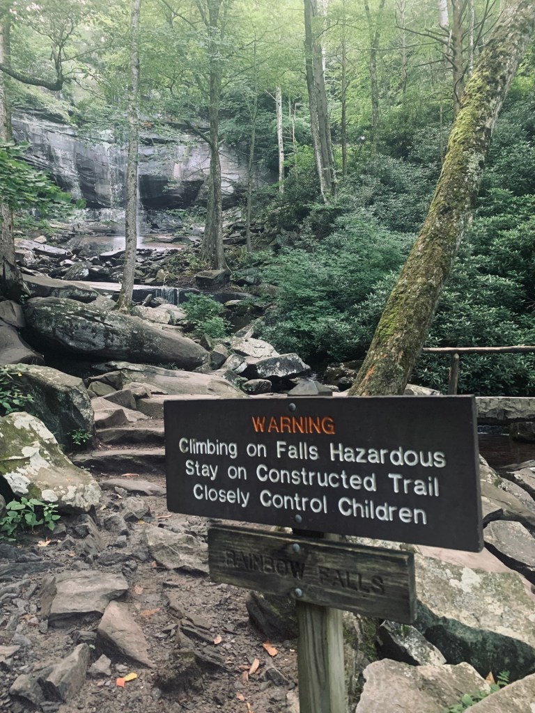 This particular trip we witnessed a gentleman take a couple of falls while doing just that. Then there was a drowning at Abrams Falls where a 73 year old man was entrapped in underwater debris. Please be conscientious of the environment and your safety. These warnings and notices are there for a reason.