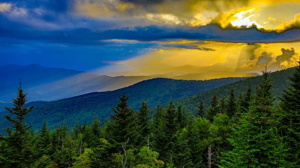 We walked back down to the parking lot to was the sunset. Even though there were some dark rain clouds moving in, we still got a few nice shots of the sun shinning through. Clingmans Dome is open to the public after 6:00 pm. Only the visitor center is closed. The road leading up to Clingmans Dome does close for the winter.