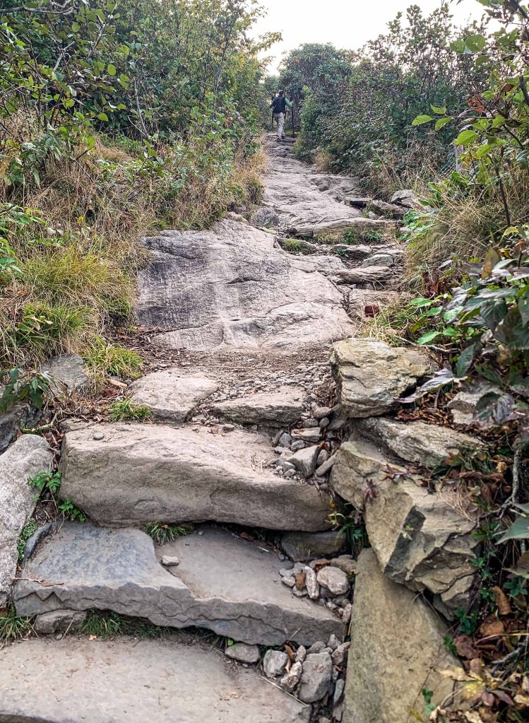 After the morning show of colors, we continued the remaining 2’ish miles to Grassy Ridge Bald. The trail is popular and well traveled so the path was clear and groomed. You climb a total of 1,079.4 feet over the course of the 2.5 (ish) mile hike from the trailhead to Grassy Ridge Bald. It’s an easy graded uphill path with no true obstacles.