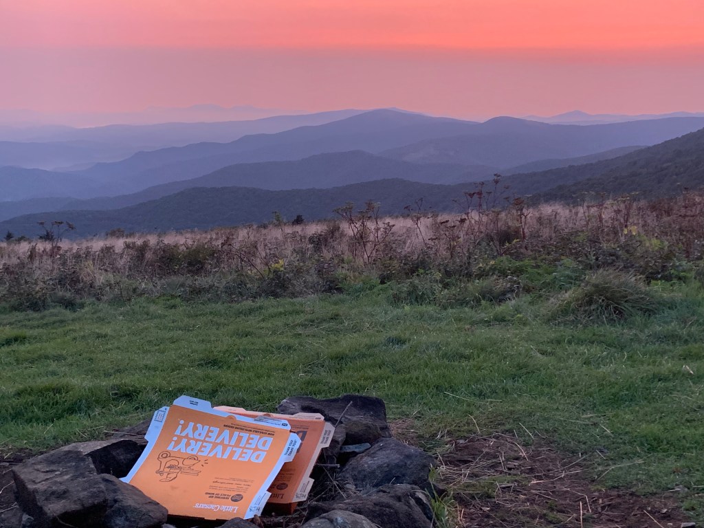PSA Announcement. We found the campsite at Round Bald had been used the night before and the partiers had left two pizza boxes with food in them, water bottles, soda cups, and other trash in the fire pit. In addition, the trees have been chopped up for (presumably) fire wood.