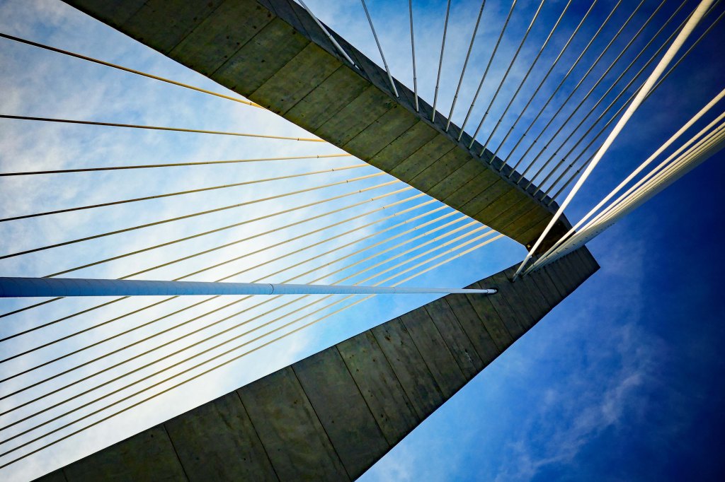 This bridge is a cable-stayed bridge meaning that it has tall, triangular cables suspending the entirety. This gives the bridge it’s iconic shape.