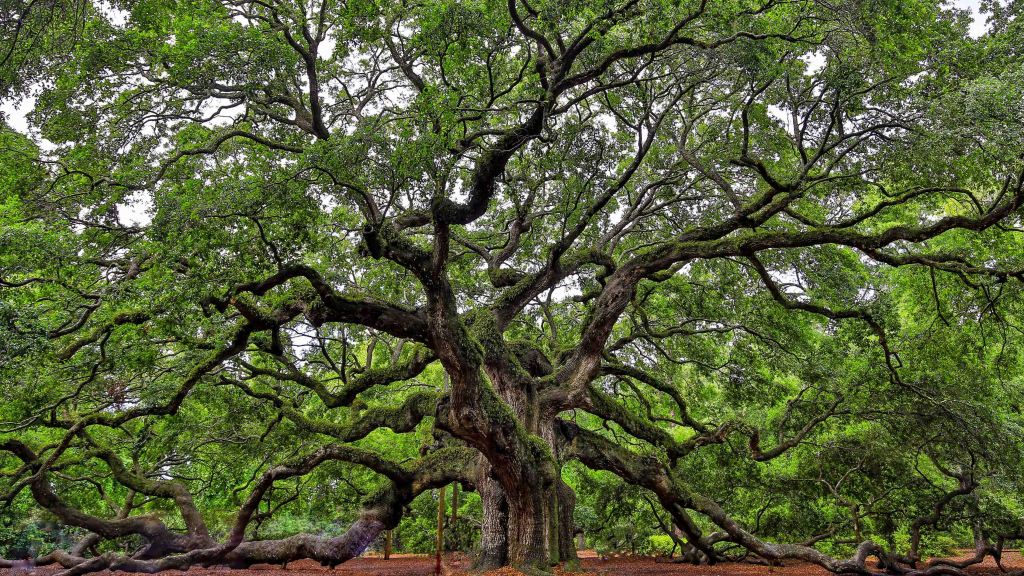An absolute must-see for anyone visiting Charleston South Carolina is the impressive Angel Oak Tree which is estimated to be in excess of 400-500 years old, stands 66.5 ft (20 m) tall, measures 28 ft (8.5 m) in circumference, and produces shade that covers 17,200 square feet (1,600 m2). From tip to tip Its longest branch distance is 187 ft.