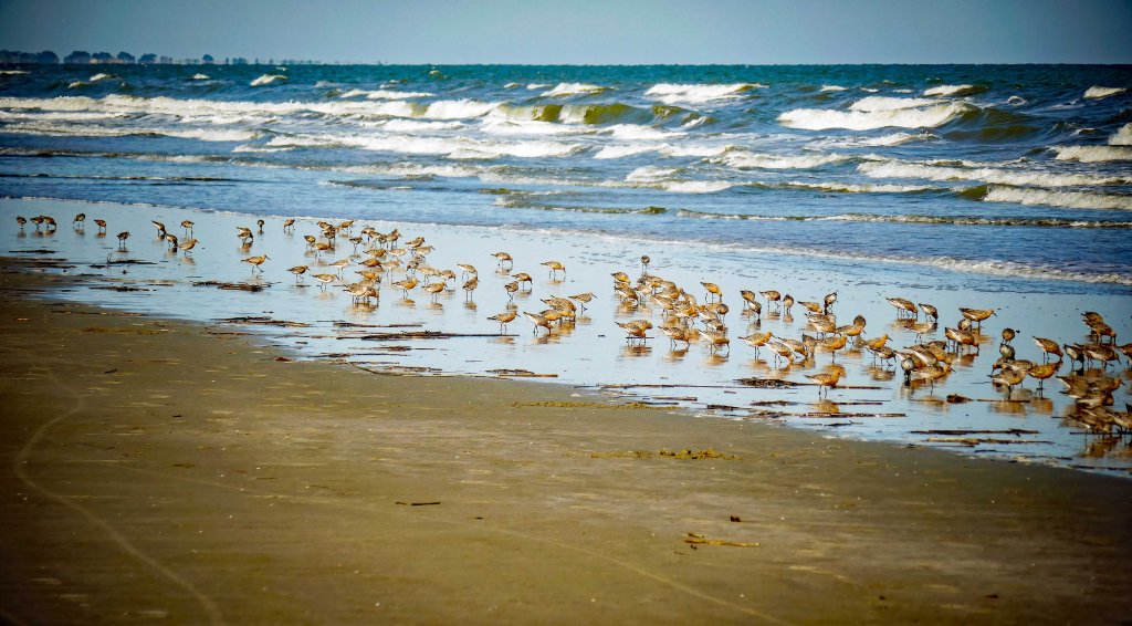 We walked our bikes down the boardwalk to the beach and rode the 10’ish miles down the beach. The wide, hard packed sand made for an easy peddle and with views of deer and bird life, it was entertaining, as well. We backtracked a bit and found a path through the golf course and were back on the paved biking path for the 10’ish miles back to the car.