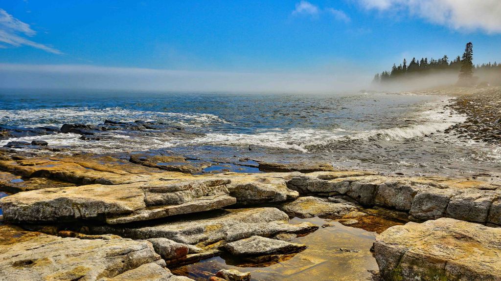 Seawall Picnic Area, an area just past Southwest Harbor where you have easy access to the coastline and several short hiking trails. The rocky shoreline provides an interesting foreground for photography. When we arrived, there was fog still rolling in adding a nice mistic imagery. The hiking trails are called the Wonderland Trail and the Ship Harbor Trail.