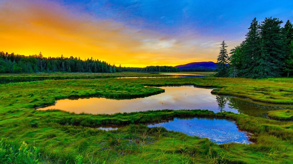 On another evening drive, leaving Bass Harbor, we were heading back to our campground. There is a bridge going over a small inland marsh. Here again, the sunset did not disappoint.