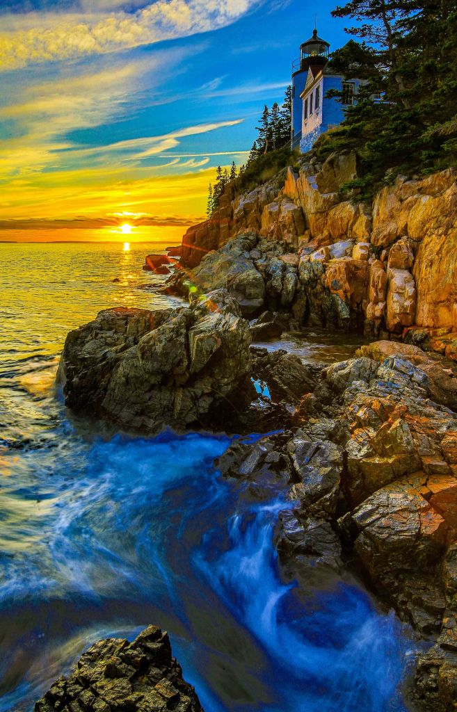 Bass Harbor Head Light Station is located a half mile from Bass Harbor fishing village. The best times to visit the lighthouse is during sunset or sunrise during the weekday. The problem is everyone else seems to know this. The parking lot is small, so get there early for a parking spot. Be prepared to have lots of other people scrambling on the rocks around you trying to get the perfect spot for their photo. Also mid to high tide provides a better photo.