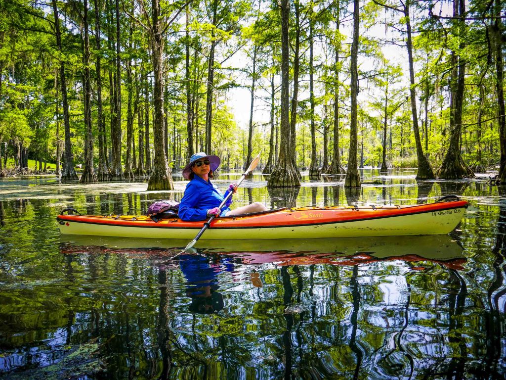 Mike would like to add that kayak photography, with its near constant movement, isn’t easy but I think he did a great job of truly capturing the beauty of this cypress haven with his trusty Canon.