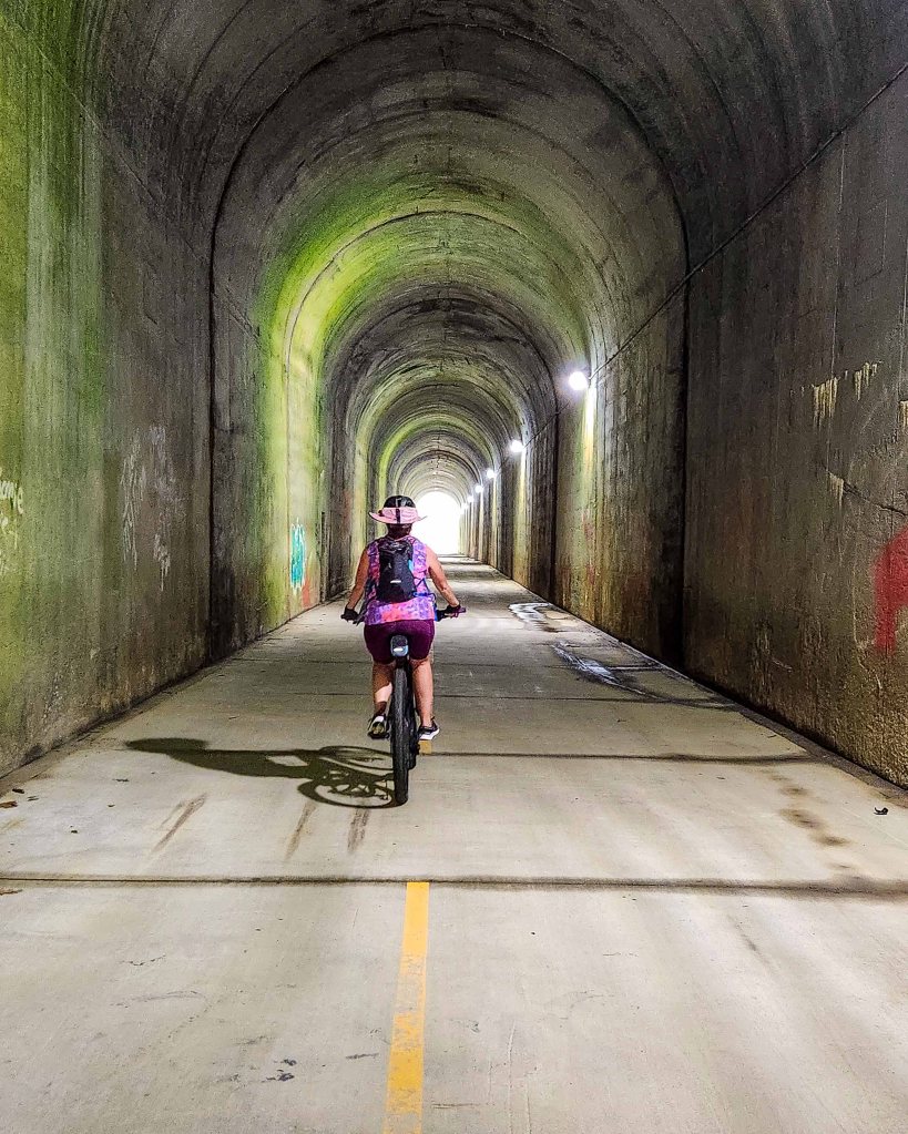 We picked a sunny, mild temperature spectacular Saturday morning to head the 1-hour drive to the Dallas, Georgia trailhead. We set off heading east with Rockmart and the Brushy Mountain Tunnel as our end point. We had an amazing 16-miles of riding to reach the tunnel. After riding through and back we detoured to check out the town of Rockmart and then we were back on our bikes.