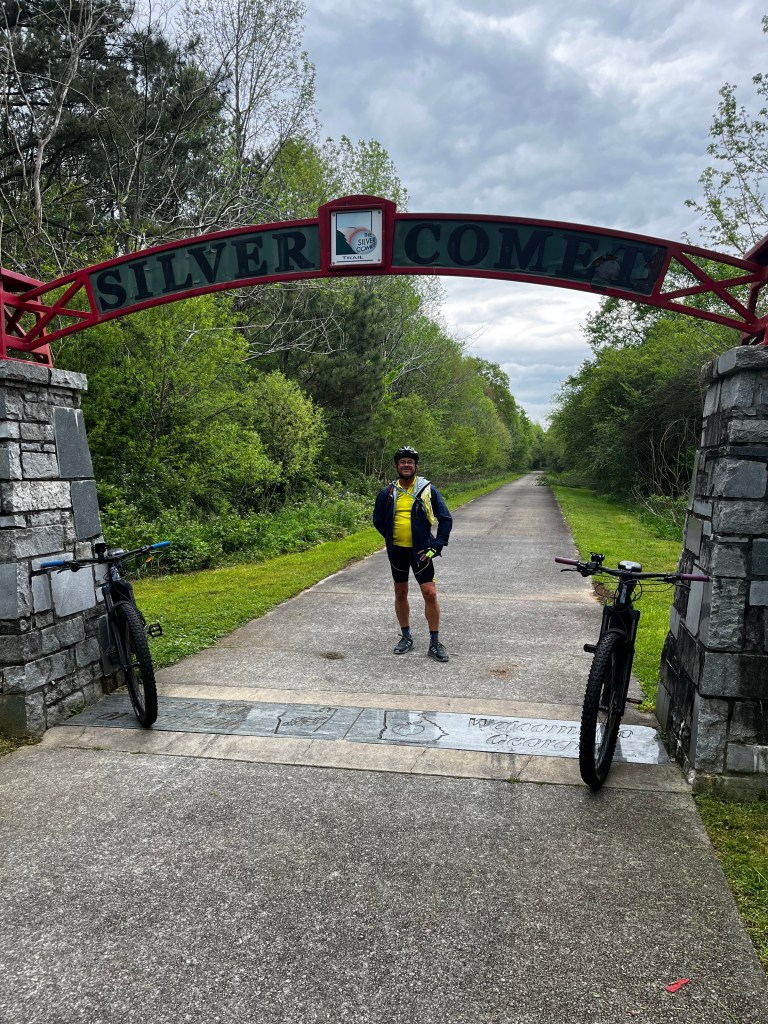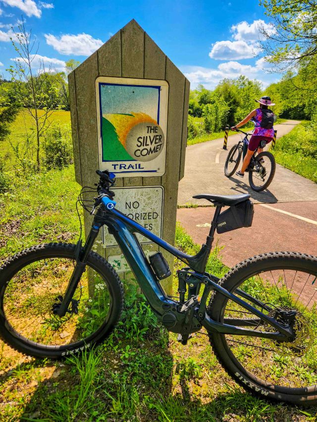 The Silver Comet Trail runs 62 miles, from Smyrna on the outskirts of Atlanta, to the Georgia/Alabama state line. There it connects to the Chief Ladiga Trail.