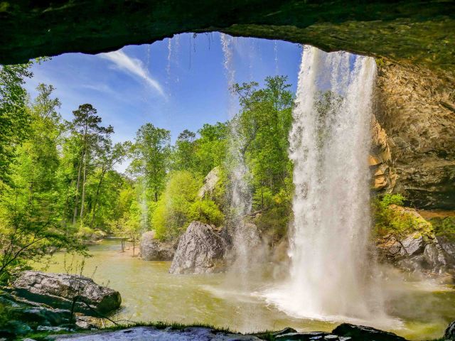 The campground offers over 120 sites from primitive tent camping to pull-through with complete hook-ups. A swimming pool, laundry facility, picnic pavilions, rec room, playground, and rental cabins are available. The campground sits along Black Creek Gorge and offers awesome views of the falls, the gorge, and the creek below.