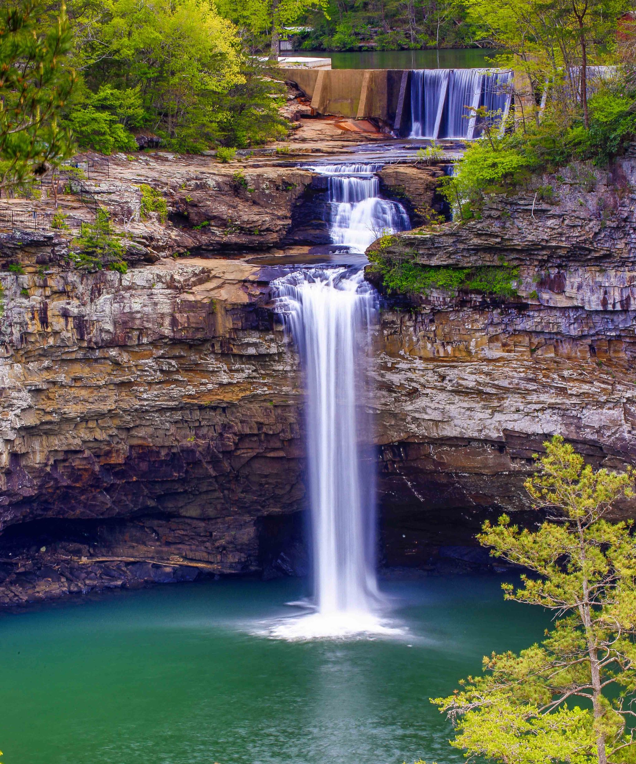Sitting just above the falls is the A. A. Miller Dam, a concrete dam which was built in 1925 for Alabama’s first hydroelectric power plant, which is of historical significance.