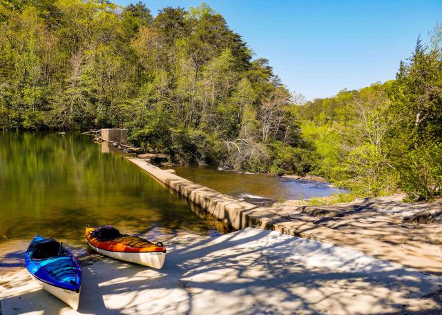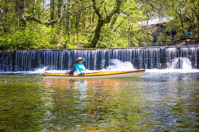 - Rent or bring your own kayak to paddle the 2.5-miles to another dam that abuts Private Property so at this point we turned around and headed back to the picnic area to enjoy our lunch in the shade by the river.