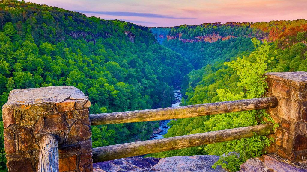 The 11-mile scenic drive begins at the Little River Falls Boardwalk Overlook and ends at Eberhart Point Overlook. The Scenic drive has many overlooks that allows visitors to view the splendor of the canyon with very little walking required.