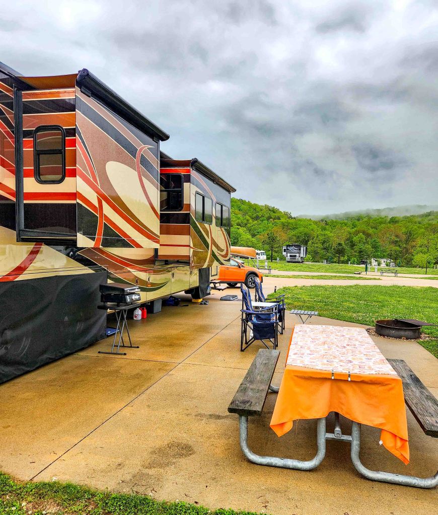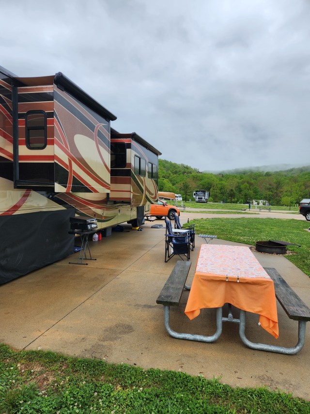 Our visit in May of 2024 found us staying at both Huzzah Valley Resort and Bass’ River Resort for a total of 12-nights. Both resorts are comparable and we wouldn’t be able to say which we liked best. Both are a floaters paradise sitting on the banks of the Huzzah River where you can get in your watercraft right from your campsite.