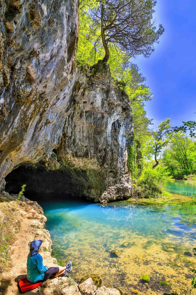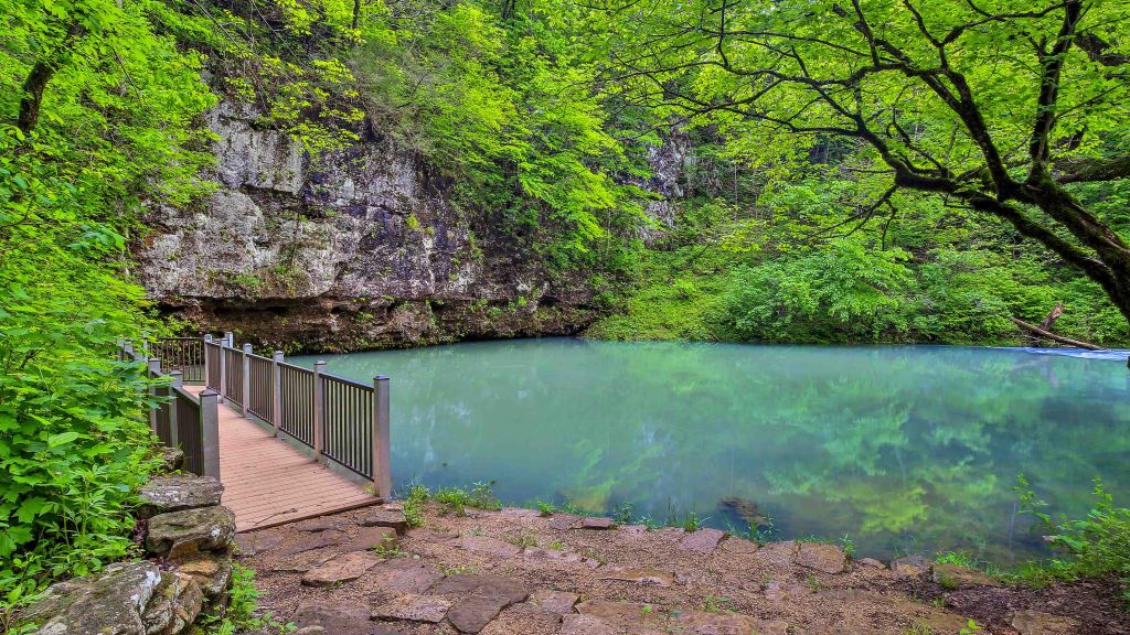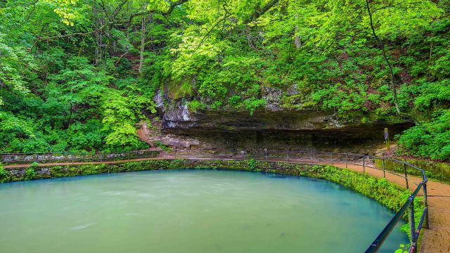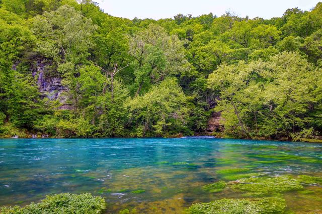 Called “Spring of the Summer Sky” by Native Americans, the more famous Blue Spring is on the Current River and is one of the most beautiful places you’ll ever find, anywhere. The spring itself is over 310 feet deep, one of the deepest in the United States. This gives it a vivid blue color that one must see to believe. If you were to place the Statue of Liberty in Blue Spring, her torch would be five feet below the surface of the water!