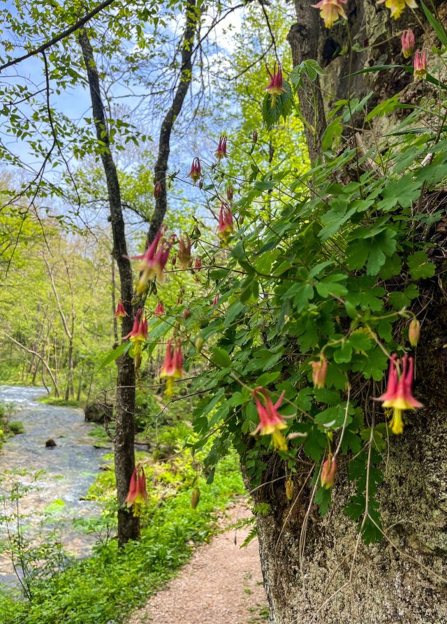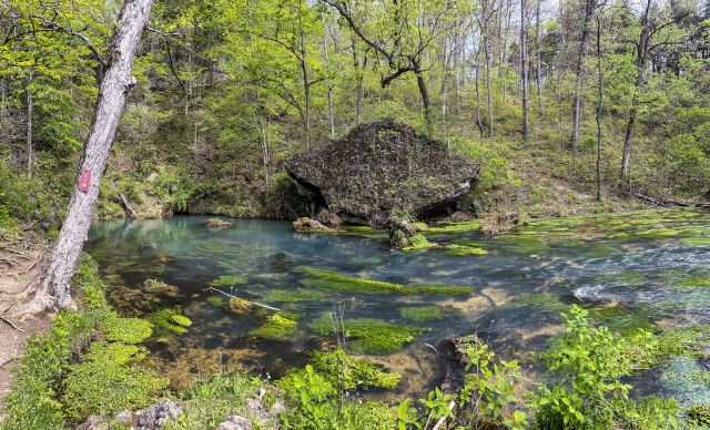 The spring is reached by a short trail which abounds with wildflowers in spring and fall colors in autumn. While completely surrounded by National Park Service land, Blue Spring itself is owned by the Missouri Department of Conservation.