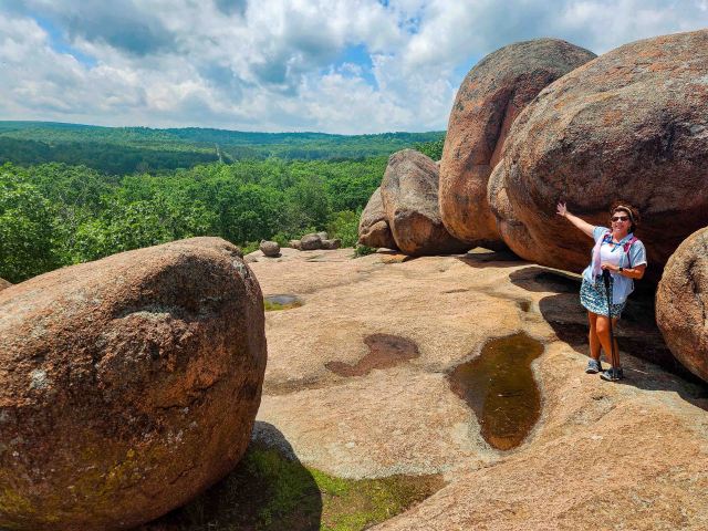 An easy way to see the rocks is from the Braille Trail, which was especially designed for people with visual and physical disabilities. The trail winds through the main area of rocks. An extension off the trail leads back to the ruins of an old railroad engine house, a remnant of the area’s quarrying and railroad history.