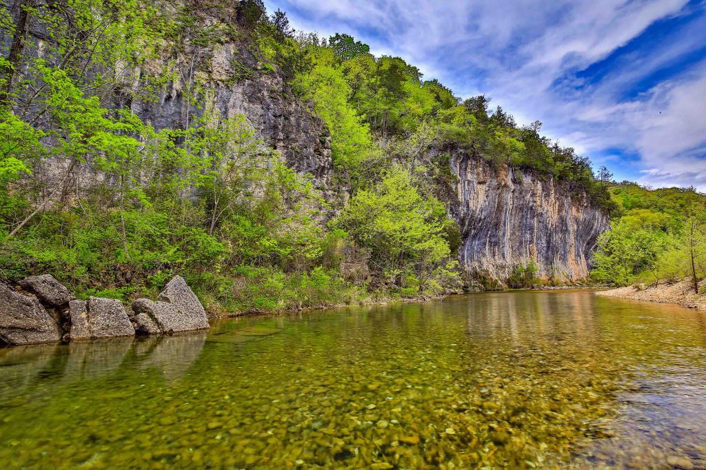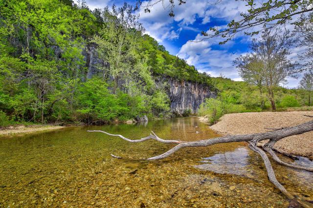 Jacks Fork River along with the Current River make up the two pristine navigable waterways within Ozark National Scenic Riverways. Thirty-Five (35) miles of the Jacks Fork are within park boundaries but portions are only navigable during certain times due to low river levels.