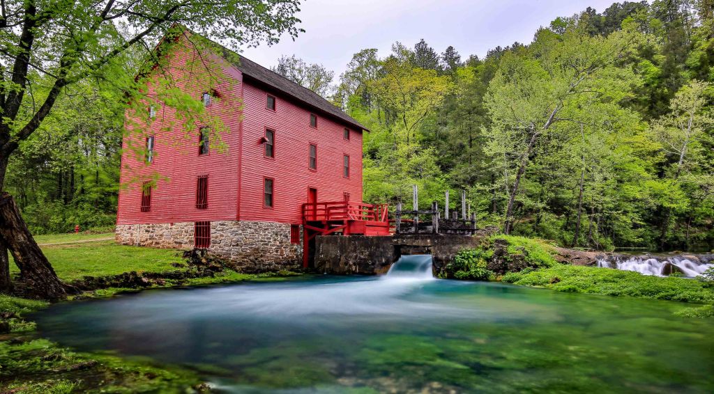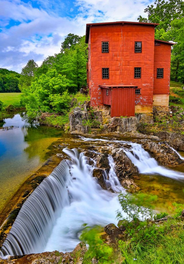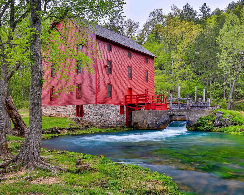 Dillard Mill State Historic Site. A red mill set on the blue waters of Huzzah Creek is as pretty a picture as there is in Missouri.. The site interprets one of the state’s best-preserved gristmills, completed in 1908. Most of the machinery in the mill is still intact and original to the building.