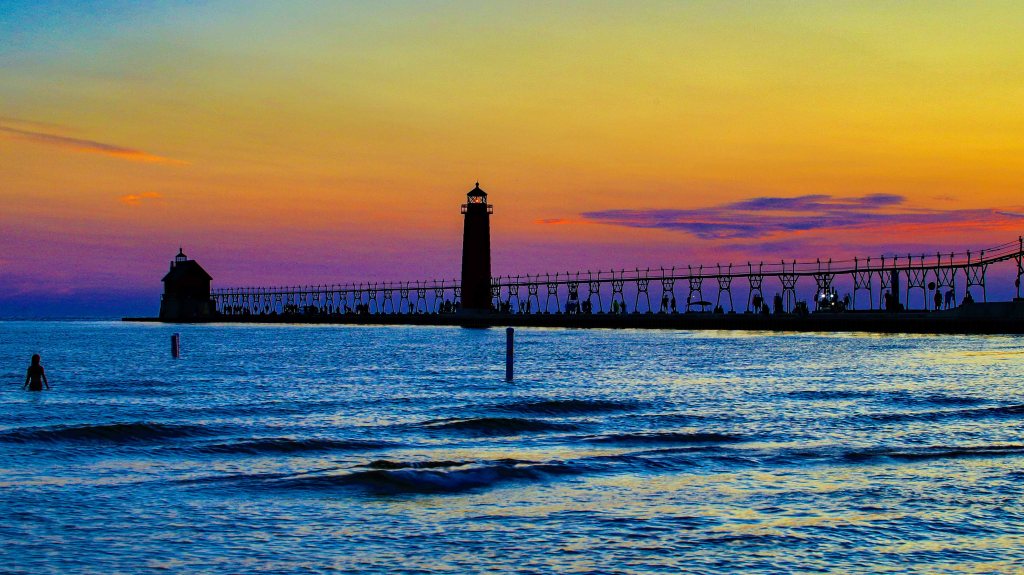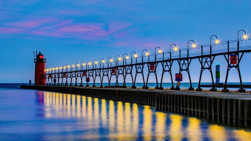 Getting a good photo of any of the lighthouses on the west coast of Michigan in mid summer without lots of people is impossible. So we got there before the sun came up and before they turned of the pier lights to capture this.