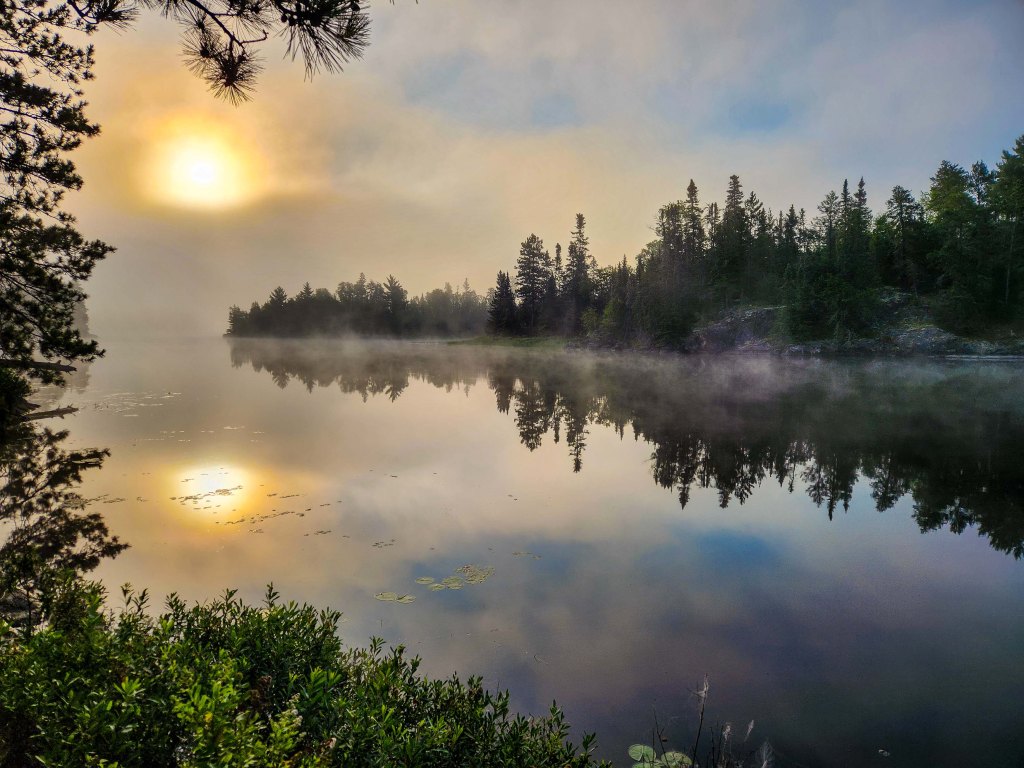 We woke to a foggy morning. We watched the sunrise while drinking our coffee. We paddled down river for a few miles, saw more beautiful scenery and more full campsites. After having lunch on an empty site, we paddled back to enjoy our last night in the BWCA.